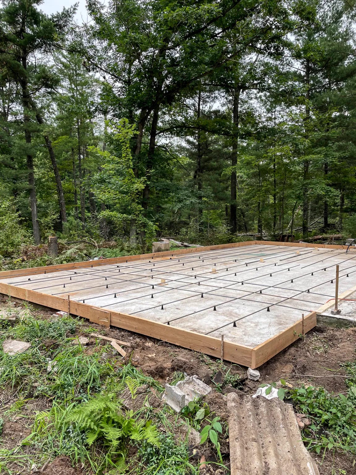 On August 28, 2021, two cement trucks drove in and emptied concrete onto the lower foundation. There was no turning back.