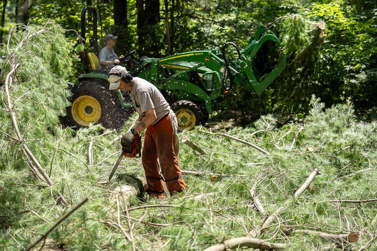 Both of our dads brought their skills to this endeavor: my dad with his forestry background and Brett’s dad with his tractor. They identified, brought down, and cleared several oaks suffering or already dead from oak wilt. Sad, but at least they’d provide a steady supply of firewood.