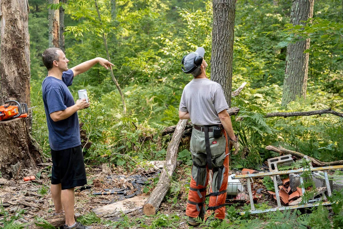 The phrase “hurry up and wait” is often used in the military, but it proved fitting for house building. While we waited for approvals, we focused on things we could still work on, including cleaning up overgrown and dead trees around the property – an easier task before there’s a house to accidentally fall on.